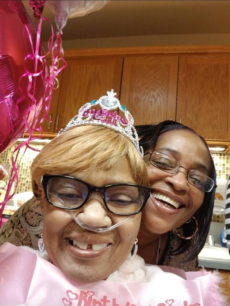 No more pain for my god mom/cousin. I will always love you and cherish the memories – cocoa Sabrina Morgan