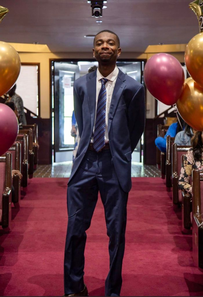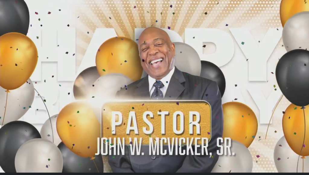 Kecia’s Pastor, Pastor John Wesley McVicker, Sr., at the podium and First Lady Marilynn McVicker (wearing the black mask).