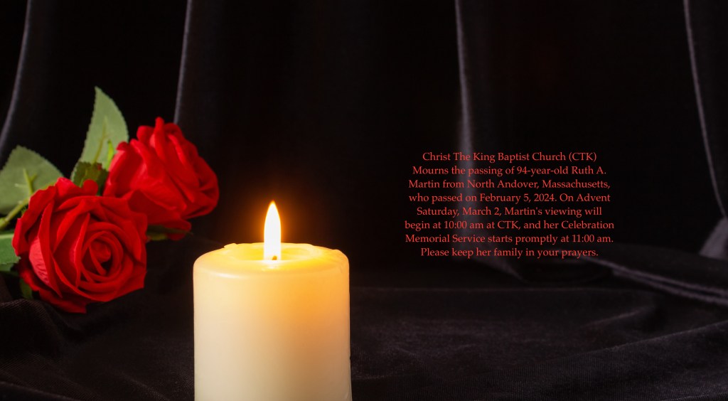 Please keep the family in Martin’s family in your prayers. (per https://www.echovita.com/us/obituaries/ma/north-andover/ruth-a-martin-17654788)