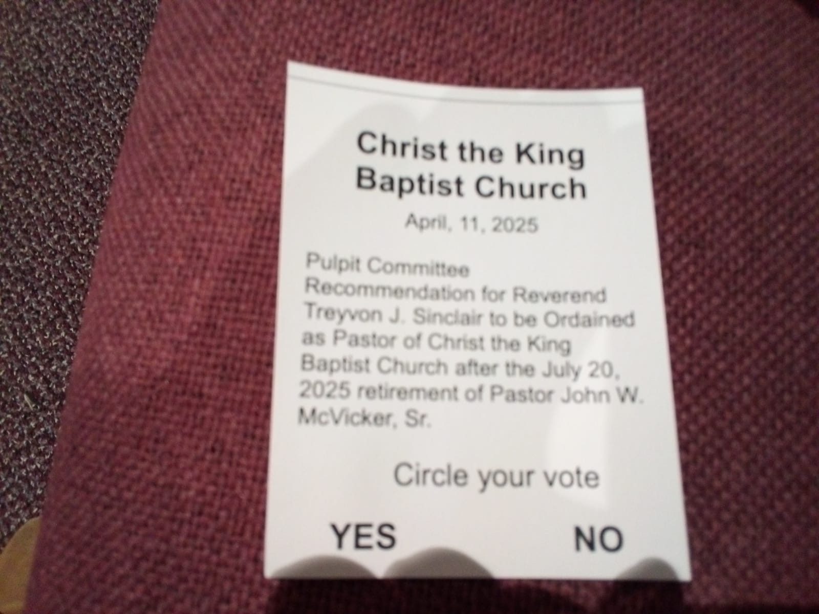 CTK votes in favor of Rev.Sinclair as the Pastor after July 20th, 2025