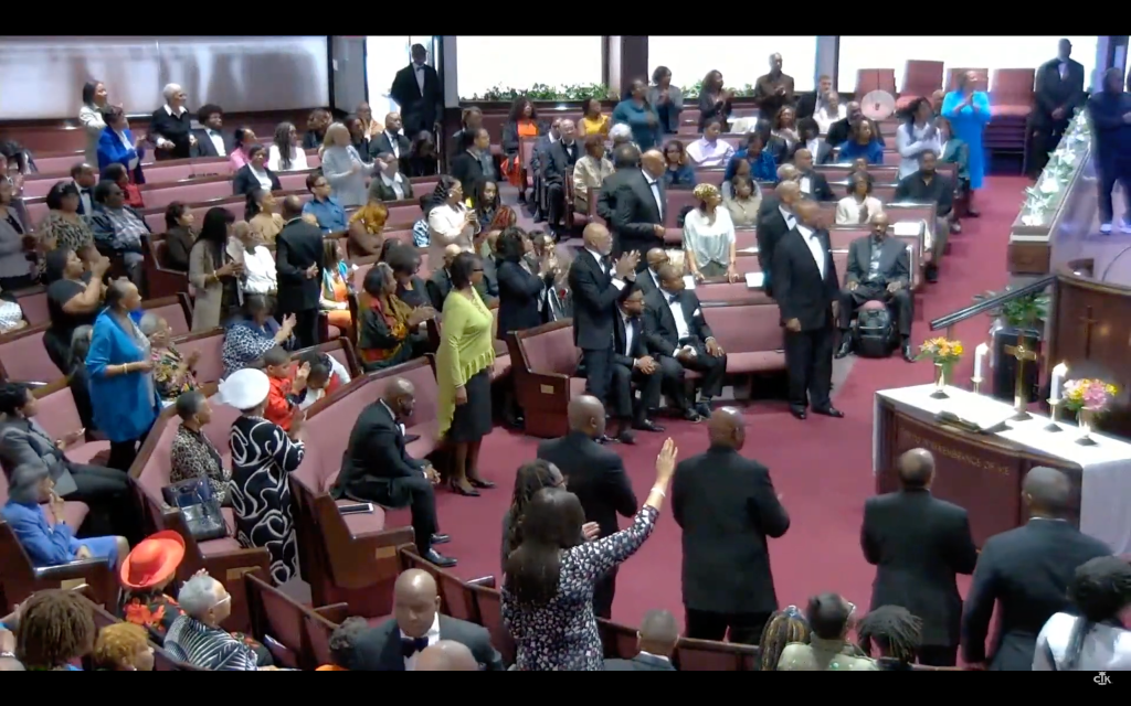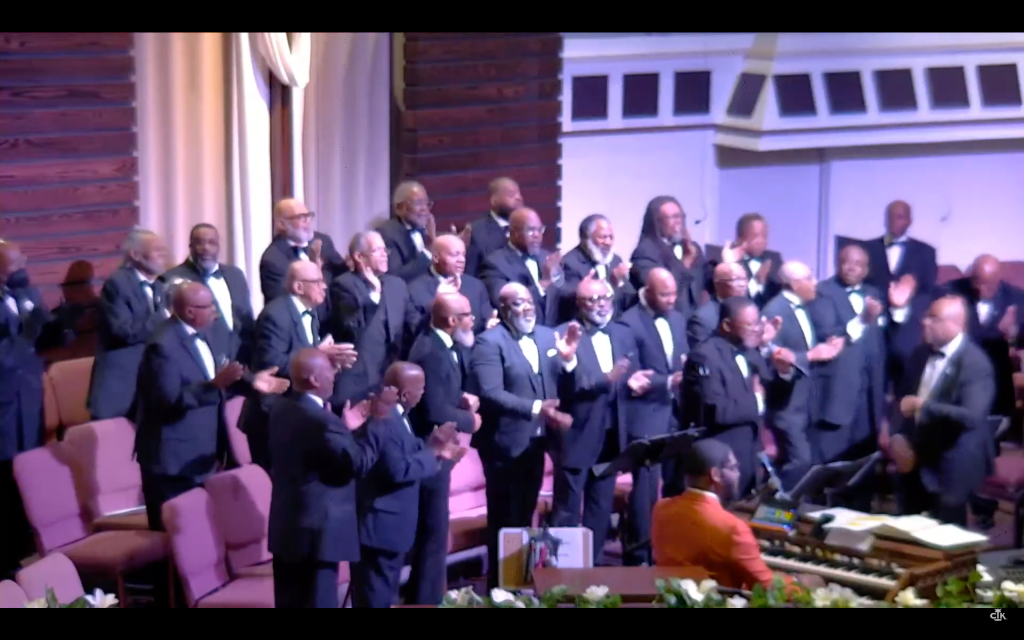 After the service, Pastor John Wesley McVicker, Sr. invited all men, regardless of whether they were wearing a bowtie, to join together for a group photo. He requested that all men take a moment to commemorate the day by participating in the picture after the Benediction/closing prayer.