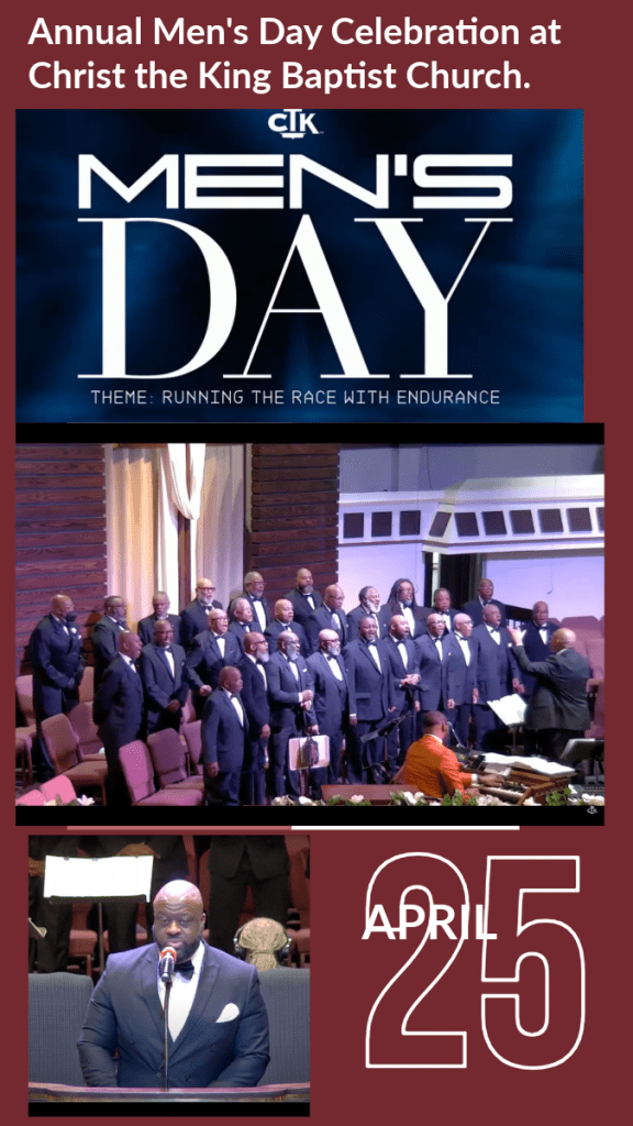 The Annual Men’s Day Celebration at Christ the King Baptist Church began on April 4 and culminated on April 25 with a Men’s Conference led by Walter Goodwyn on April 24, 2025. Ninety men gathered to receive words of wisdom from Rev. Pastor Christopher Boston.