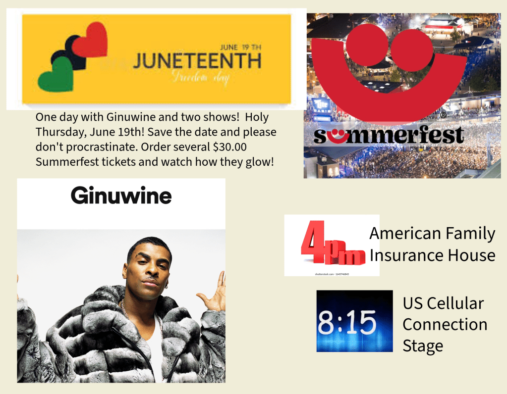 Per Al Overview, “The Juneteenth celebration at Summerfest is a partnership between Summerfest and Northcott Neighborhood House. It will follow the traditional Milwaukee Juneteenth Day parade and festival on Dr. Martin Luther King, Jr. Drive.”