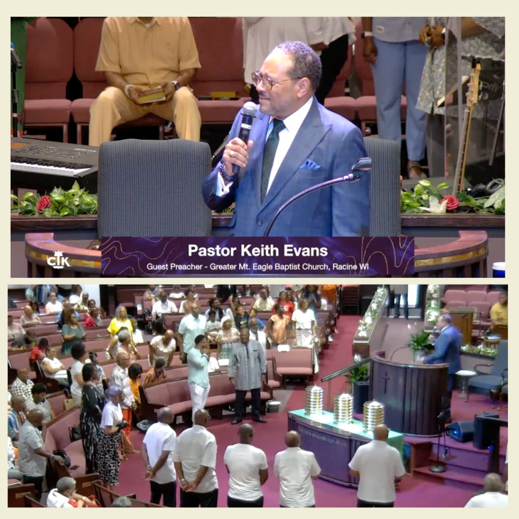 On Sunday, July 6th—Communion and Baptismal Sunday—Rev. Keith Evans from Greater Mount Eagle delivered the morning message in honor of his mentor, Pastor John Wesley McVicker, Sr. He reflected on Pastor McVicker’s influence and legacy at CTK during this service, which commemorated the 40th anniversary of Pastor McVicker’s retirement farewell and celebrated his decades of leadership and impact on the church.