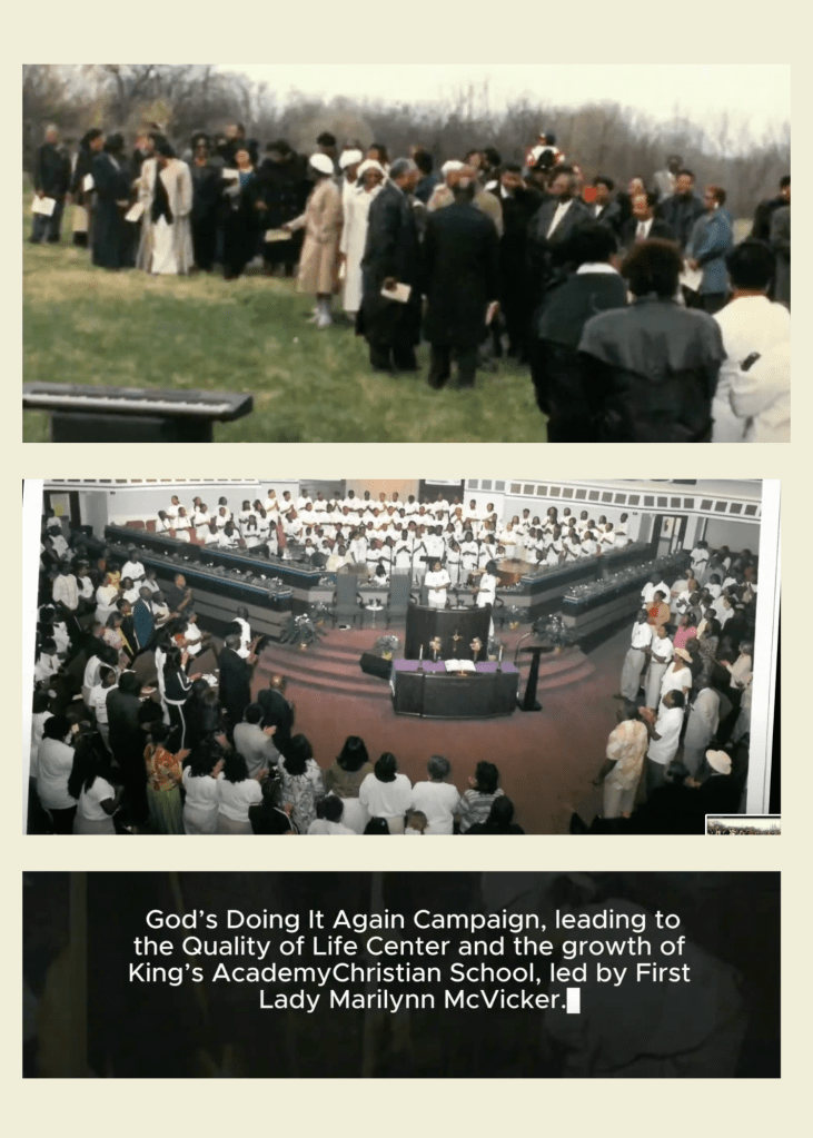 We marched from the Vel Phillips. We got in our little cars and drove down Capitol Drive and came around there on Leon Terrace, and we outgrew that, and while we were growing, I said, “We need to get rid of this mortgage.” I just asked. You saw the picture. We burned the mortgage, and we kept growing. We had two services. People were parking all around Fond du Lac and all up by Shiloh trying to get to that church. We didn’t know where to park. We didn’t know where they were parking, and if you didn’t get there first, you had to sit around a corner and watch the service on television, and there was no screen like that it was a TV.