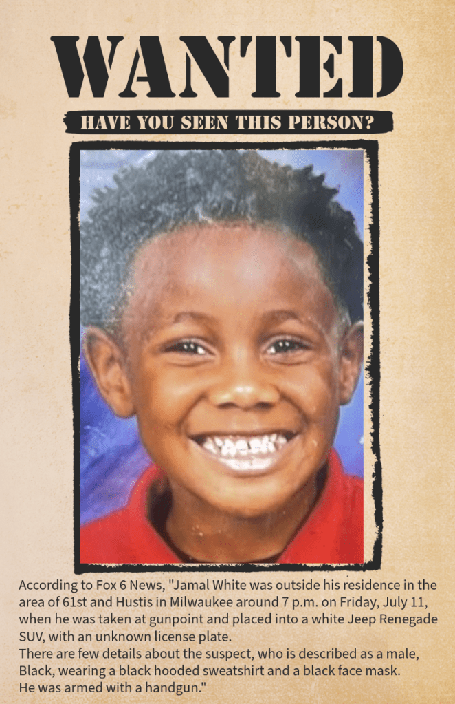 For more information on the abduction of Jamal White in the vehicle below, please refer to the Fox 6 News link. Milwaukee
