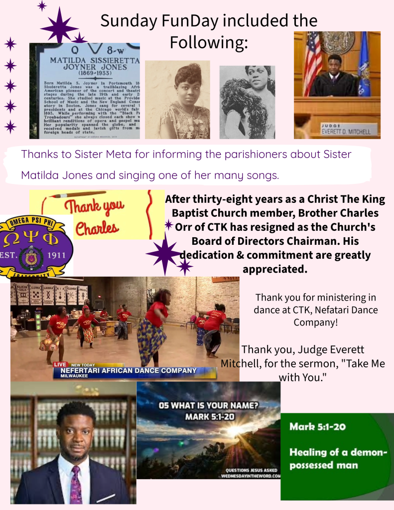 Terrific Tuesday, February 6th, Happy Birthday to Tracy Sloan, Christ The King Baptist Church Adult Praise Dance Leader. Rest in Sweet Peace, Rev. Brenda Sheets.