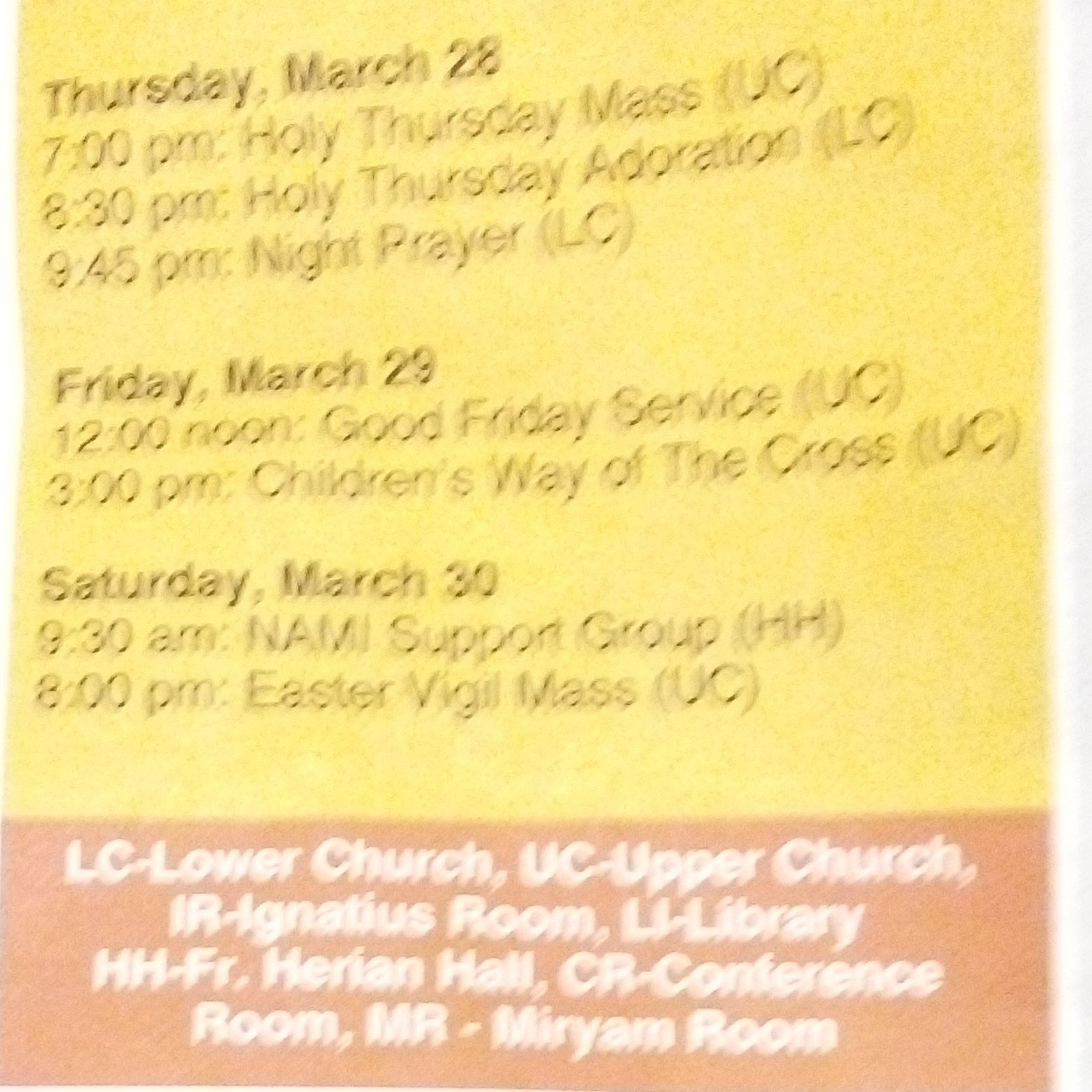 Good Friday Services at Gesu Parish will be at Noon in the Upper Church.