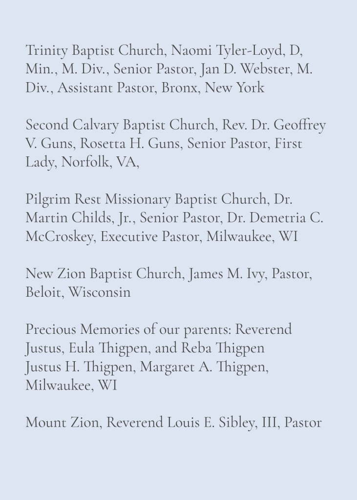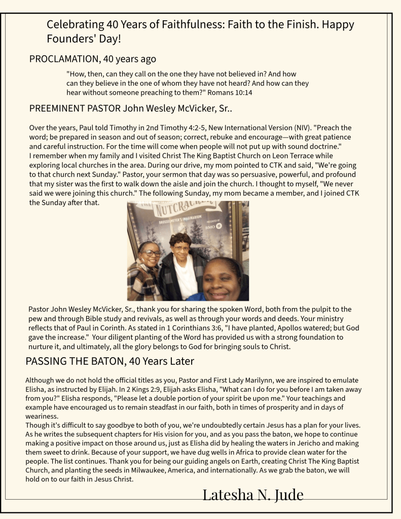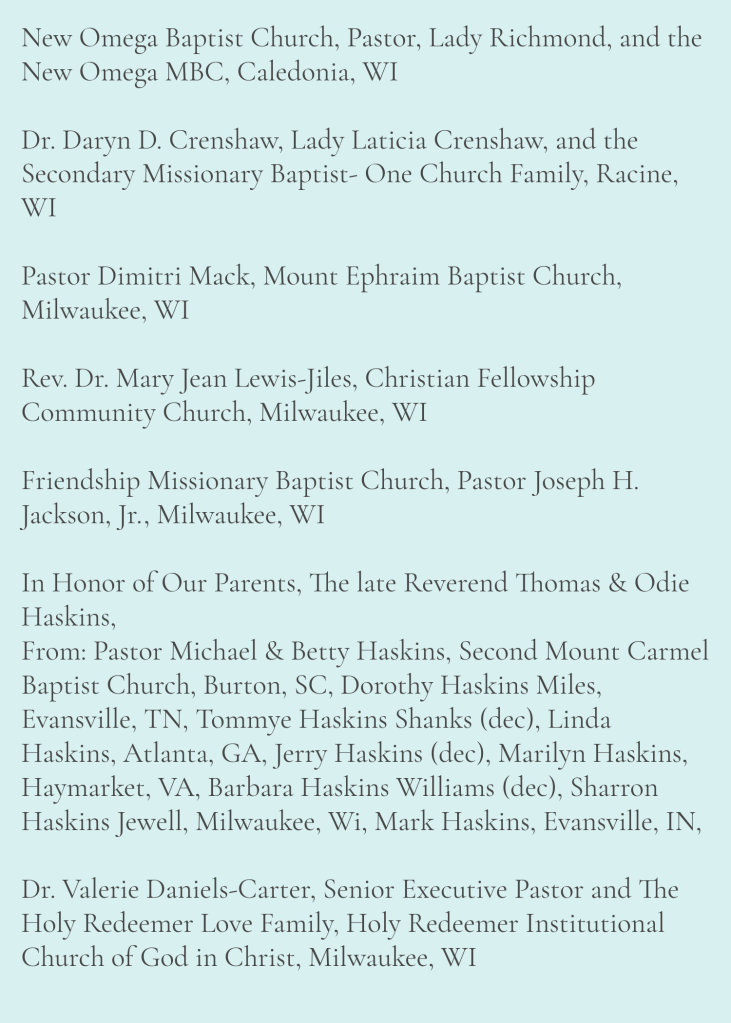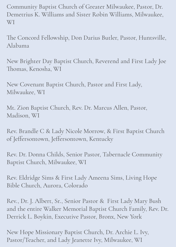 A wide array of esteemed clergy and churches from Milwaukee, Wisconsin, and across the nation contributed ads to the souvenir book, each honoring Pastor and First Lady McVicker’s legacy and reflecting the deep bonds within the faith community.
