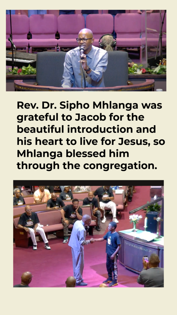 Jacob Introduces & Welcomes Rev. Dr. Mhlanga to the Pulpit