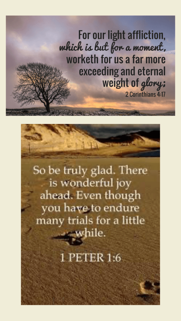 “I am stronger because of God’s perpetual presence.” “My present pain sets me up for an eternal gain.”